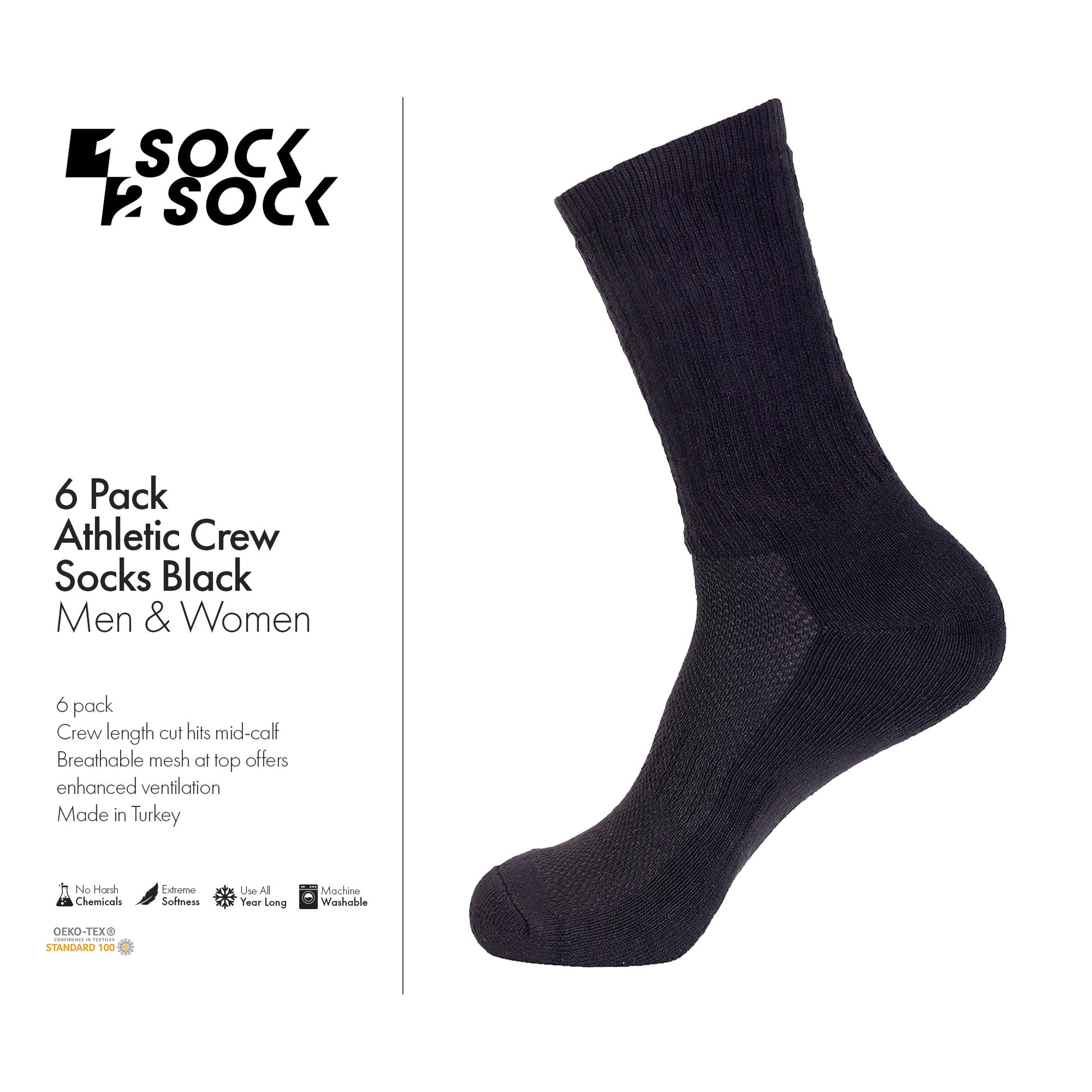 6 PACK ATHLETIC CREW SOCKS BLACK
