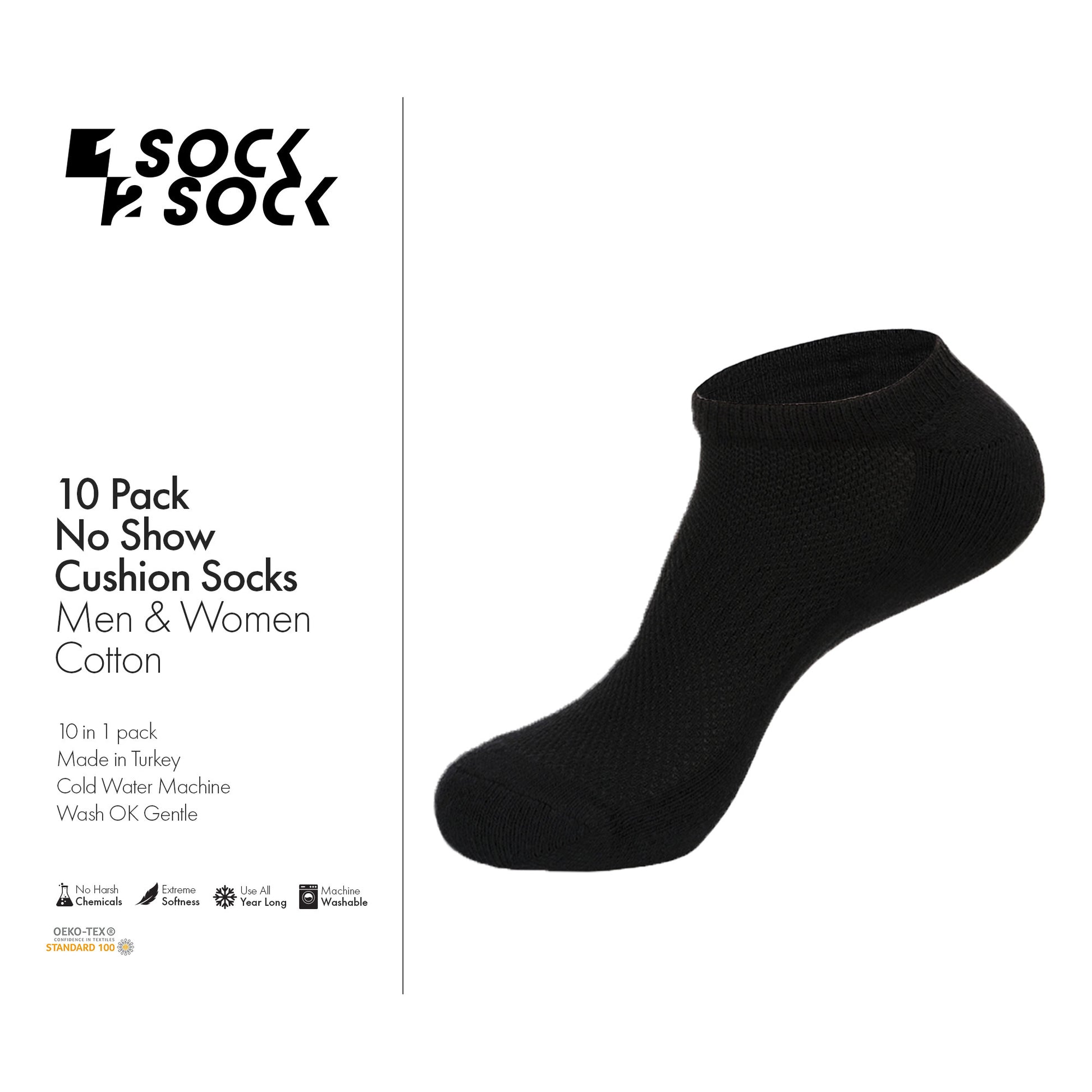 10 PACK NO SHOW CUSHION SOCKS BLACK